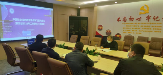 2022年3月21日下午,中国职业技术教育学会(简称:学会)系统贯彻落实《教育部2022年工作要点》动员部署会顺利召开,本次会议采取线上线下相结合的方式进行。中国职教学会会长、教育部原副部长鲁昕,教育部职成司副司长谢俐、教育部教师司副司长宋磊,中国职教学会副会长兼秘书长刘建同、常务副会长史薇、监事陈建光、陈建华等出席会议。我院党委书记惠朝阳及相关处室负责人参加线上会议。会议由中国职教学会副会长孙善学主持。