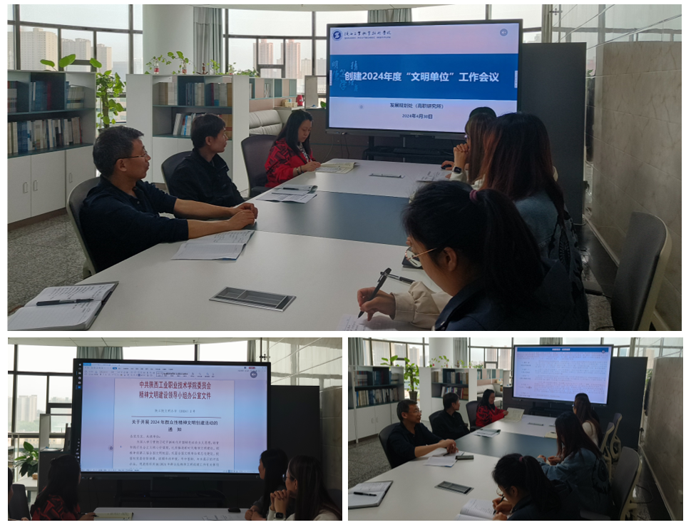 为深入贯彻落实《中共陕西省委教育工委办公室 陕西省教育厅办公室关于开展全省教育系统“五一”假期前后校园安全稳定工作督查的通知》要求,并不断深化新时代文明单位创建工作,推动精神文明建设工作高质量发展。2024年4月30日下午,发展规划处(高职教育研究所)在精艺楼5楼办公室召开安全稳定工作部署会暨学校文明单位创建工作启动会,会议由李龙龙处长主持,部门全体人员参加会议。
